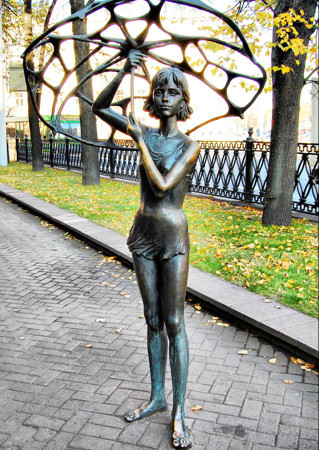 В 2000 году Михайловский сквер получил новую скульптуру- "Девочка с зонтиком". К прежним обитателям сквера "Незнакомке на скамейке" и "Прикуривающему молодому человеку" - присоединились хрупкая девочка-подросток с зонтом в руках.